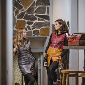 Vår populära långväst nu i en tvåfärgad variant, som om du har kjol och väst i ett. Tight huva och figurnära passform. Fungerar lika bra som mellanlager på vintern eller som ytterplagg på hösten och våren. Värmer både rumpa och kropp samtidigt. Det finns 2 handfickor framtill med dragkedjor för förvaring eller för att värma kalla händer.