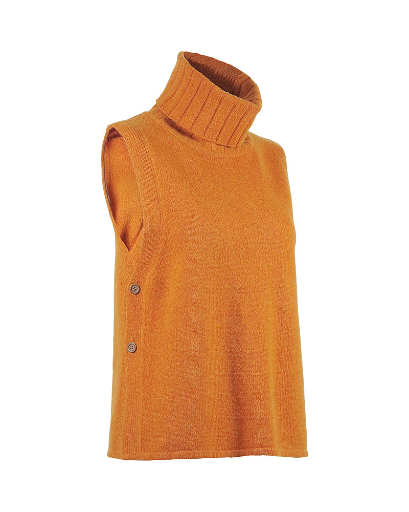 Kathy Slipover är en snygg slipover med hög krage och ribbstickade sidor. Slipovern är öppen i sidorna och kan knäppas med 2 fina knappar. Lätt att ta på och av i och med de öppna sidorna och slipovern är snygg till både byxor och kjol. Värmer gott med sin mjuka och sköna ullmixkvalitét. Finns i flera härliga och vackra färger.