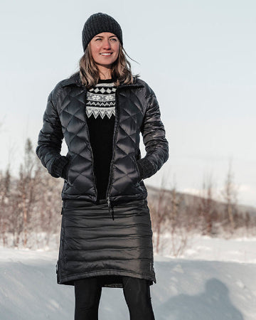 Short Down Skirt är en klassiker i SKHOOP´s sortiment. Den knälånga dunkjolen kombinerar känslan av sport och värme på bästa sätt. En av våra mest omtyckta kjolar som fungerar hela vintern. Modellen är något längre baktill och kortare framtill för smidighetens skull samt för kjolens annorlunda skärning. Perfekt för att hålla värmen vid vinterns aktiviteter eller bara att känna sig varm och fin i – mångas favorit som finns i många färger!