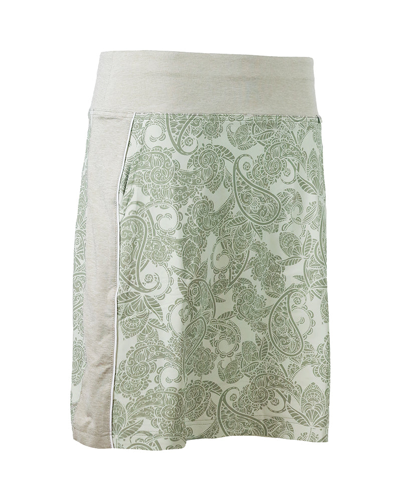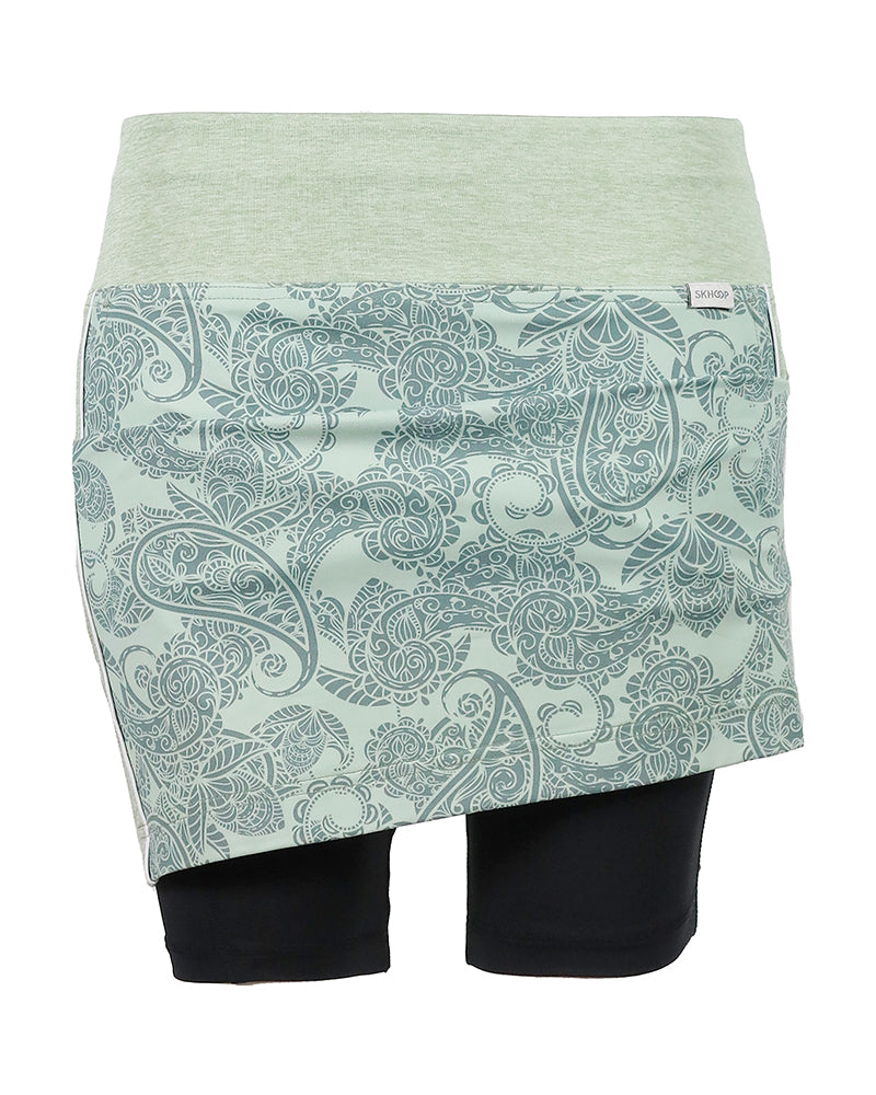 Somrigt mönster i en riktigt skön kjol med insydda funktionsshorts för bästa känsla. Perfekt på fjällvandringen, golfrundan, cykelturen eller en dag på stan. Piping utmed sidorna för sportig look. Handfickor i sidorna fram och en bakficka upptill på höger sida. Fickorna är väl anpassade för golfhandske, bollar, peggar och andra viktiga saker för en sommardag utomhus Skrynklar inte, tar lite plats och är supersnygg till det mesta. Ditt perfekta resplagg som du kan använda vid alla tillfällen. Njut av din sommardag!