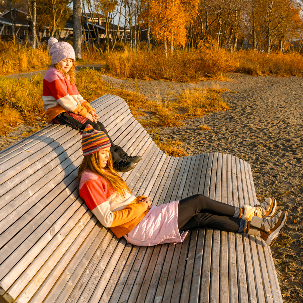 Molly Sweater är tröjan som redan är en favorit hos oss på SKHOOP! Färgglad i stickade blockränder i skönaste ullblandningen. Halsringningen och ärmavslut har en fin ribbstickning och nertill är det ett rakt avslut. Molly Sweater är en tröja för både aktivitet och vardag när du vill hålla dig varm och snygg. Funkar till allt och alla tycker vi!