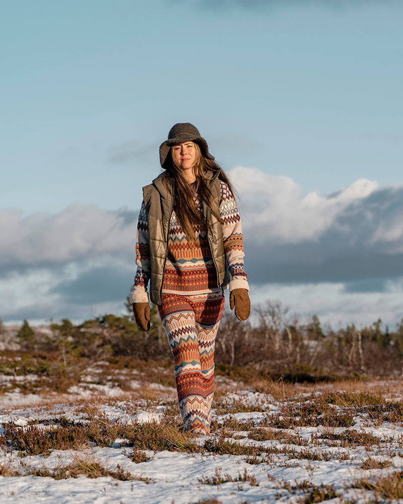 Ofelia Bootcut är ett par härligt mönstrade bootcut byxor. De är stickade i en skön ullblandning. Byxorna är 70-tals inspirerade både vad gäller färg och form, och kommer att värma gott kalla vinterdagar väg till jobbet eller på helgpromenaden. Matcha med Ofelia Sweater och du har en outfit som garanterat kommer glädja både dig och din omgivning.