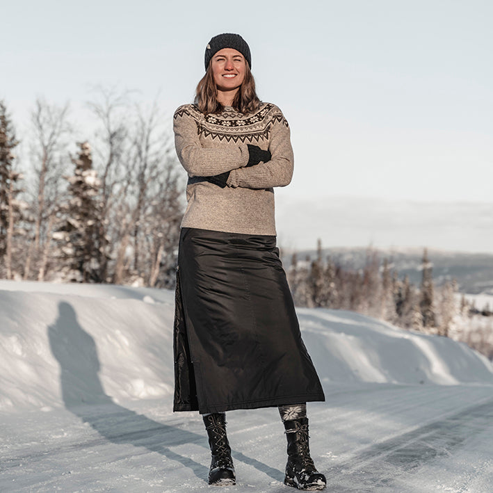Original Skirt är SKHOOP´s första kjol - många kallar den ”Årekjolen” eftersom den kom till just i Åre. Original Skirt är ett perfekt värmande plagg på promenaden, samtidigt som den håller dig varm i väntan på bussen. Kjolen väger lite och är lätt att packa med sig var man än ska. Ger dig skydd mot kalla vindar vart du än befinner dig!