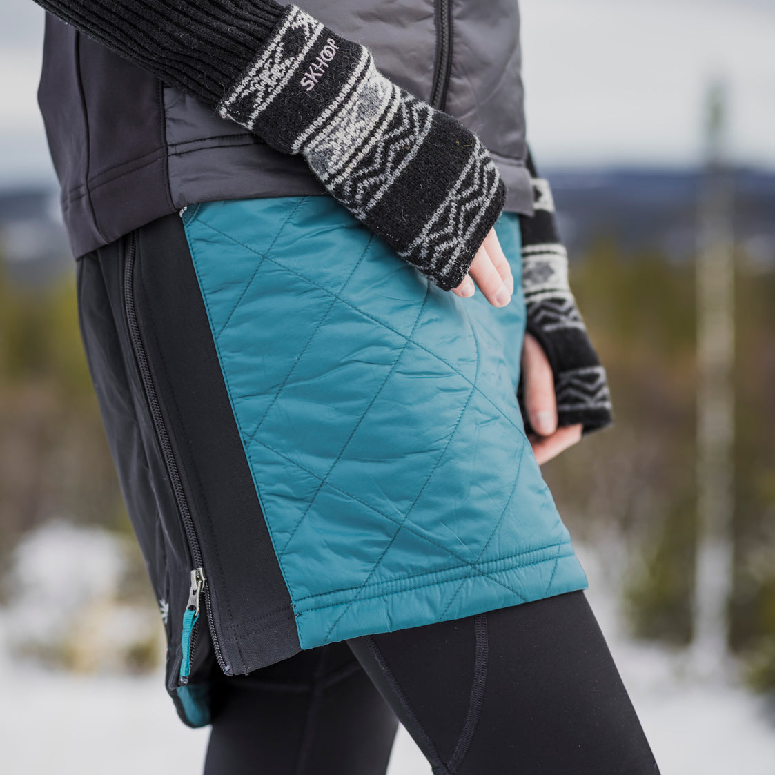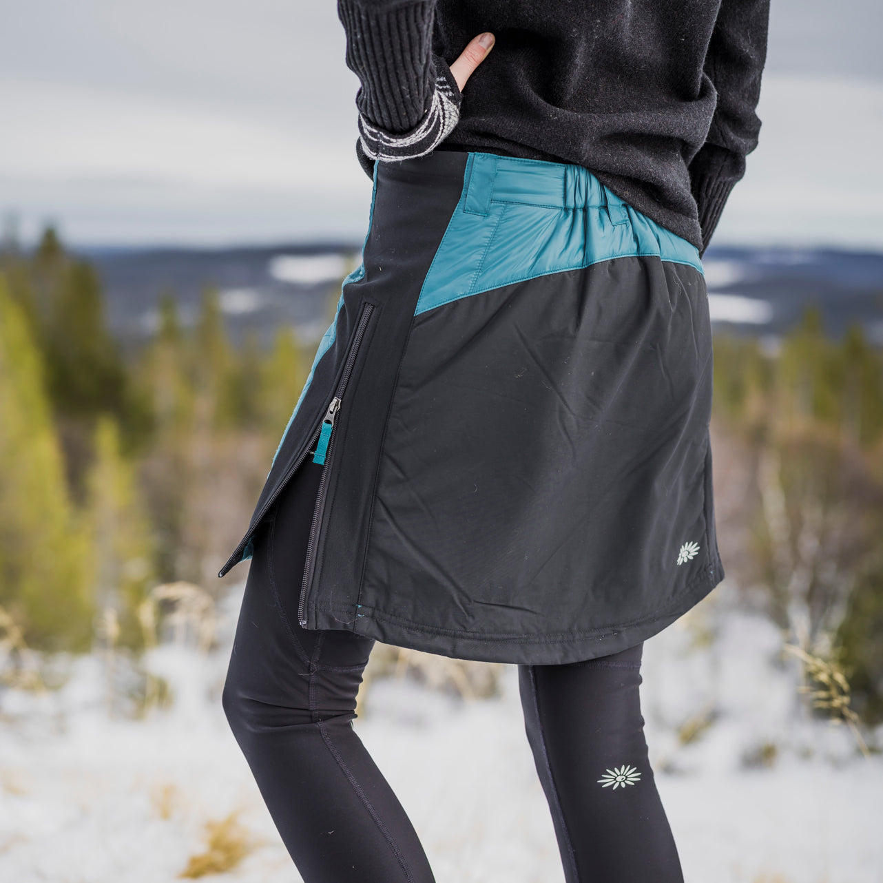 Sitta på blöta stubbar eller snötäckta backar med snowboarden? Då är detta kjolen för dig! Rita Skirt är förstärkt bak med ett kraftigare laminerat material som står emot väta och fukt. Kjolen har även sidopaneler i stretchmaterial för bästa komfort när du är i rörelse. En bra ”outdoor” kjol helt enkelt.